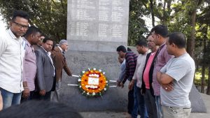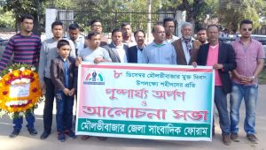 ১৯৭১ সালের হত্যাযজ্ঞের স্বীকার সকল শহীদদের প্রতি শ্রদ্ধা জানিয়ে মৌলভীবাজার জেলা সাংবাদিক ফোরামের আয়োজনে মৌলভীবাজার সৃতি স্তম্ভে শ্রদ্ধাঞ্জলি অর্পন করা হয়েছে। শনিবার (৮ই ডিসেম্বর) দৈনিক বাংলার দিন কার্যালয় থেকে জেলা সাংবাদিক ফোরামের সভাপতি বকসি ইকবাল আহমদের নেতৃত্বে র্যালী সৈয়দ মুজতবা আলী সড়ক পদক্ষিণ করে সৃতি স্তম্ভে এসে শ্রদ্ধাঞ্জলি প্রদান করা হয়।