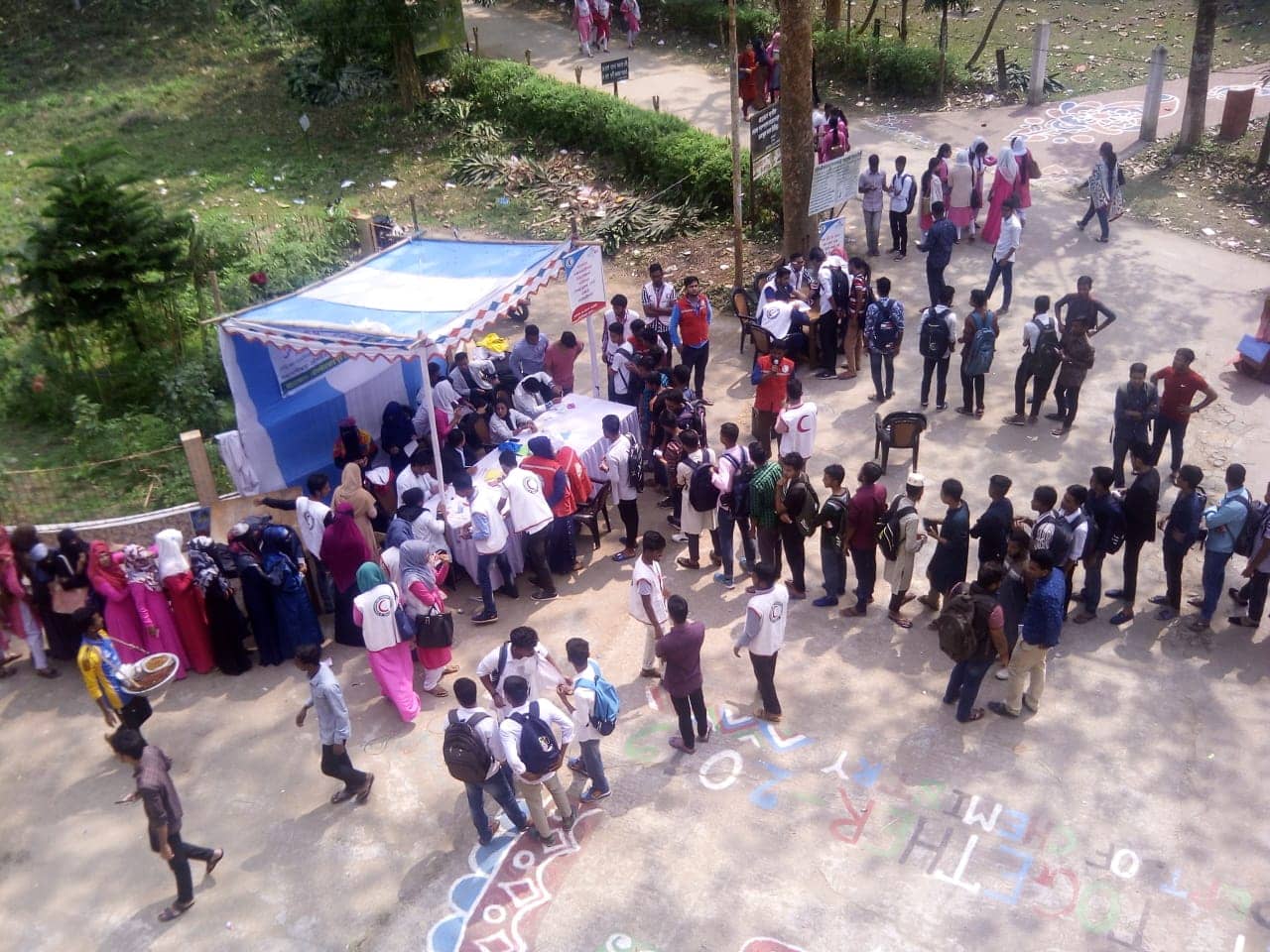 কাইয়ুম সুলতান, মৌলভীবাজারঃ ১১ই মার্চ রোজ সোমবার সকাল ১০ টা থেকে ২ টা পর্যন্ত মৌলভীবাজার সরকারি কলেজের শহীদ জিয়া অডিটোরিয়াম প্রাঙ্গনে মৌলভীবাজার রেড ক্রিসেন্ট সোসাইটির যুব সংগঠন বাংলাদেশ যুব রেড ক্রিসেন্ট ইউনিটের উদ্দ্যোগে ফ্রি ব্লাড গ্রুপিং ক্যাম্পেইন অনুষ্ঠিত হয়। উক্ত অনুষ্টানের উদ্বোধন করেন মৌলভীবাজার সরকারি কলেজের অধ্যক্ষ ড. মোঃ ফজজুল আলী। অতিথি হিসেবে উপস্থিত ছিলেন মৌলভীবাজার সরকারি কলেজের উপাধ্যক্ষ প্রফেসর সাইফুল্লাহ আহমদ, মৌলভীবাজার সরকারি কলেজের শরীর চর্চা বিভাগের শিক্ষক নুরুন নাহার, রেড ক্রিসেন্ট সোসাইটি মৌলভীবাজার ইউনিটের সেক্রেটারি শাহ মোহাম্মদ আলী। এছাড়াও উপস্থিত ছিলেন ইউনিট ল্যাবেল অফিসার আব্দুল বারী , মৌলভীবাজার রেড ক্রিসেন্ট যুব ইউনিটের যুব প্রধান কামরুল ইসলাম মুন্না, উপপ্রধান এস এম কামরুজ্জামান সৈকত, উপপ্রধান সানজিদা শহিদ সুরভী। নিরপেক্ষতা, সেচ্ছামূলক সেবা, একতা, মানবতা এবং সার্বজনীনতার স্লোগানকে সামনে রেখে রেড ক্রিসেন্ট সোসাইটি মৌলভীবাজার যুব ইউনিট কাজ করে যাচ্ছে। উক্ত ক্যাম্পেইনে প্রায় তিন শতাধিক ছাত্র-ছাত্রী বিনামূল্যে ব্লাড গ্রুপিংইয়ে অংশ নেয়। উক্ত অনুষ্ঠানে মেডিকেল সহায়তা করেন মডার্ণ ডায়াগনষ্টিক এন্ড কনসানটেশন সেন্টার।